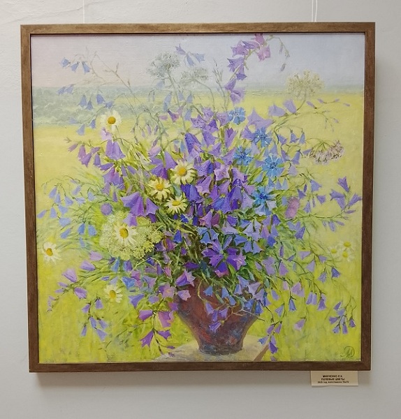 Натюрморты с домашней утварью, хранящей тепло рук своих хозяев, рассказывают свои истории. Эти предметы, написанные с удивительной реалистичностью, вызывают ностальгию и напоминают о семейных традициях, о вечерах, проведенных в кругу близких. Не менее завораживают цветочные композиции. Нежные, скромные колокольчики, васильки и ромашки словно воплощение чистоты и искренности, соседствуют с роскошными, пышными пионами, символизирующими красоту и изобилие. Эти букеты, написанные с мастерством и тонким чувством нюансов цвета, привносят в экспозицию яркие краски и пробуждающую энергию весны, напоминая о том, что даже в холодное время года природа полна жизни и красоты.