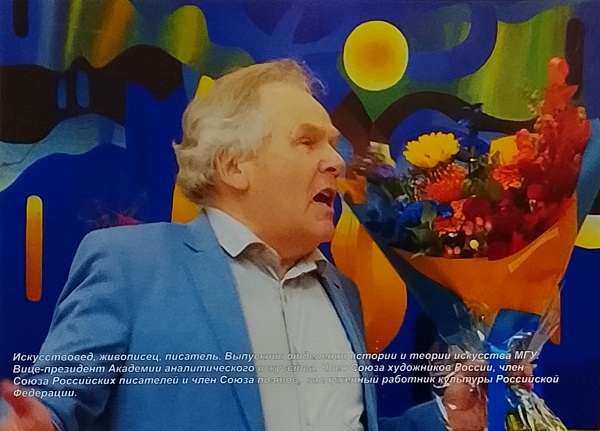 «Я рад поздравить нас всех с этим замечательным событием - открытием выставки памяти Владимира Обухова. Владимир Обухов - талантливый искусствовед, художник, поэт, мыслитель. Он - организатор и идейный вдохновитель нашего творческого объединения Академии аналитического искусства, которая была создана более сорока лет назад - сначала называлась она АКАНИС, бригада художников-контравангардистов «М-19», и затем уже объединилась в Академию аналитического искусства. Владимир Михайлович был идейным организатором и все проекты, которые были организованы нашей Академией, были возможны под его руководством идейным. Он находил в каждом художнике что-то свое, особенное, и помогал раскрыть таланты каждого автора, поэтому у нас художники совершенно разные, работают в разных направлениях, цель одна - художественное освоение Вселенной. Я хотел зачитать одну фразу его с последней выставки, цитату из этой выставки Владимира Обухова: «У меня было достаточно времени кое-что понять в себе, в своих делах, в своих отношениях к самым разным людям, и я давно уже осознал, что большая часть того, что делается человеком, делается - через человека. И что всё самое хорошее, что мы делаем, – это общее и даже всеобщее дело. Мне повезло быть рядом с людьми большой душевной стати. Художниками. Поэтами. Мыслителями». И нам повезло жить рядом с человеком большой душевной стати - Владимиром Обуховым».
