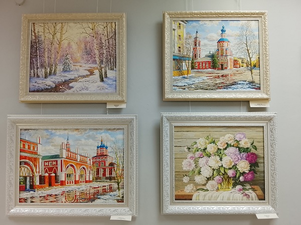 С теплотой и любовью художники запечатлели уголки родного города, преображенные зимним очарованием. Заснеженные улицы, уютные дворики любимой Калуги, окутанные тишиной и спокойствием, которые так созвучны рождественскому времени. Особое место занимают изображения величественных калужских храмов и монастырей. Их силуэты, возвышающиеся на фоне зимнего неба, наполняют пространство старинного города торжественностью и духовностью. В этих работах чувствуется глубокое уважение к истории и вере, что является неотъемлемой частью рождественского послания. Все произведения, будь то пейзажи, натюрморты, портреты, абстрактные композиции, предметы декоративно-прикладного искусства обладают особой притягательностью и заставляют зрителя вглядываться, размышлять и находить в них что-то свое.